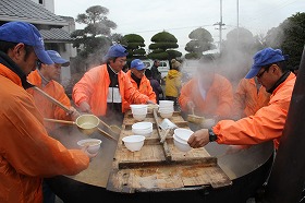 | 第44回三光地区一周駅伝大会 竹馬会のはずみ鍋で豚汁のサービス |