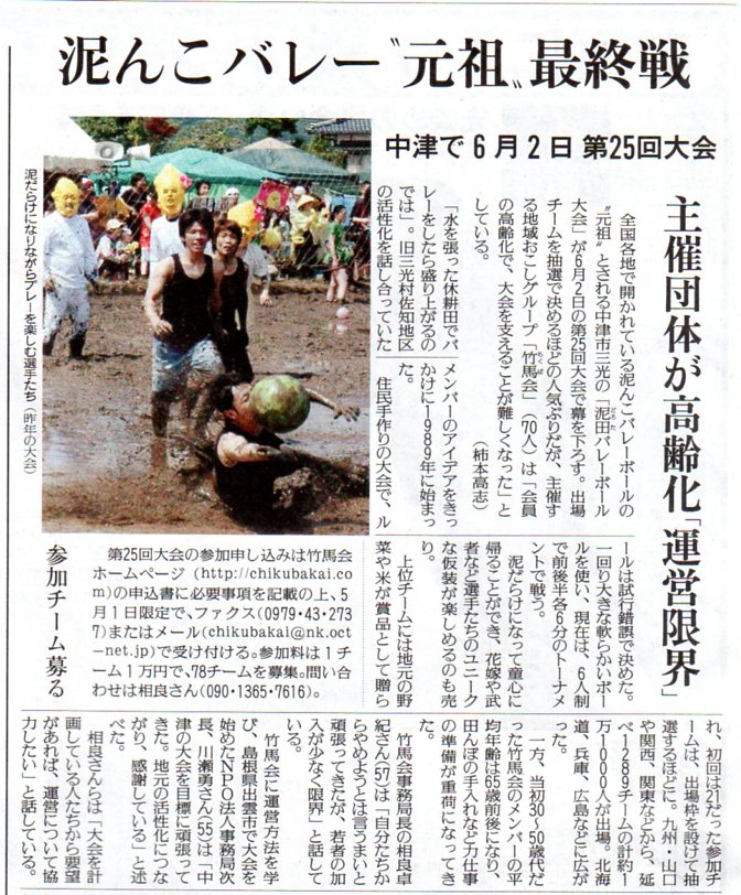 | “タウンマガジンなかつ”で泥田バレー25年を振り返る |