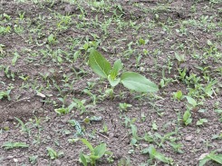 | 7月3日(土)、ひまわりも少しずつ大きくなっていますが、それと同じくらい草も伸びています。管理機3台でひまわりとひまわりの間を耕して草を鋤き込みました。 |