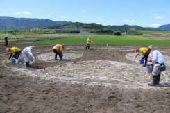 | 6月13日(日)、今年で11年目となる福島ひまわり里親プロジェクトのひまわりの種まきをしました。この日は雨も降らず予定通りに種まきをすることが出来、佐知地区の子とも会からも多くの児童が参加し、総勢60名で作業は1時間ほどで終わりました。地元の新聞社、ケーブルテレビも取材に来てくれて盛り上がりました。 |