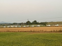 | 7月25日(日)、三光コスモス園の種まきに向けた、三光地域の営農グループの皆さんが大型トラクター25台で耕起作業をしました。竹馬会会員の佐知の営農グループからも参加しました。 |