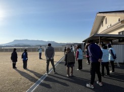| 2月14日(日)、午後からどんど焼きを行ないました。2時30分からの予定でしたが、夕方から雨の予報だったので1時間早めて実施しました。神職のがコロナ撲滅の願いも込めた祝詞の後、どんどに火が入り、約100人の参加者はどんどの火でお餅を焼いて食べて無病息災を祈りました。 |