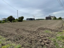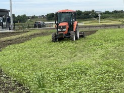 | 6月5日(水)、2日前に肥料をまいたひまわり畑をもう一度耕し種まきに備えました。 |