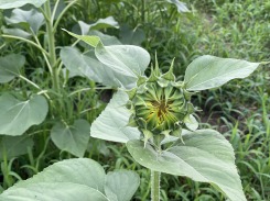 | 7月24日(水)。ひまわりも日に日に大きくなりまり、140pにもなっています。蕾も付き開花ももう直ぐのようです。 |