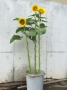 大分空港には宇佐市在住の方がステンレスアートのひまわりを展示しています。その横に本物のひまわりを鉢植えで飾ろうという計画です。只今、鉢植えのサンプルで日持ちの実験中です。