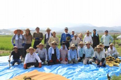 佐知地区の農地・水環境保全活動をする皆さん方がボランティアでひまわり畑の草刈りをしてくださいました。 |