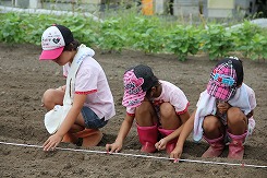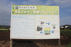 八面山をバックの最高のロケーションの畑に、子ども会、老人クラブ、佐知地区、旧市内三保地区のみなさんで約1時間で6000粒の種を蒔きました。 看板を設置して、集合写真を撮ってすべての作業を終了。午後からは雨もパラパラ、乾燥していた畑にはほどよいお湿りとなりました。 集合写真を拡大 |