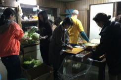 | 1995年1月7日に起きた阪神・淡路大震災。 全国からたくさんの救援ボランティアの人たちが駆けつけました。 私たち竹馬会も1ヵ月後の2月12~14日に、大分県中津市や下毛郡などの地域づくりグループで組織する「中津下毛地域づくりネットワーク推進協議会」のメンバーと救援活動を行いました。 一日も早い復興の弾みになればと『はずみ鍋』で2日で4箇所、延べ5,000食の炊き出しを行いました。この救援活動を通じ貴重な体験をさせていただき、被災者の方々から多くのことも学びました。 |